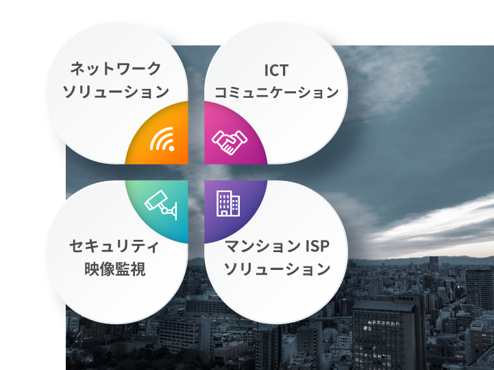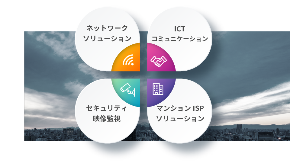ジェイネッツは、長年の通信環境の構築によりさまざまな技術を取得し、経験豊富な技術者たちを育成して参りました。当社では、総合通信エンジニアリング事業者として「高速WiFi」「セキュリティカメラ」「顔認証IPオートロック」「IoT設備」「スマートロック」「サイネージ」といった6つのサービスソリューションを根幹とし、お客様の生活・ビジネス環境をサポートして参ります。