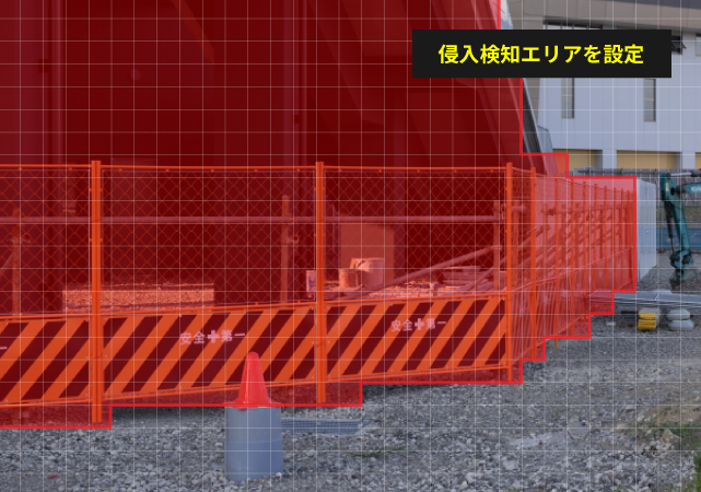 監視画面上でエリアを設定し、侵入があれば通知や現地で防犯アラートを出すことが可能。機密が多い製造所や工場の裏口・屋上等の進入禁止エリアの異常発生をいち早く感知し、事件や事故を未然に防ぐといった運用も可能です。