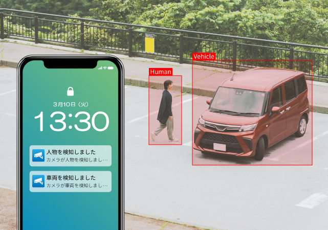 映像から人や車両を自動検出し、リアルタイムで通知します。人や車両が映った時間だけを録画検索でき、駐車場での事故やエントランス内外の事件などの捜査時間短縮にも貢献します。不審者や不審車両を検出・自動追跡するため、セキュリティ管理も高い精度で行います。