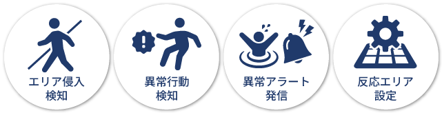 従来の防犯カメラにはなかったAI機能により、映像をリアルタイムに解析し自動で判別。