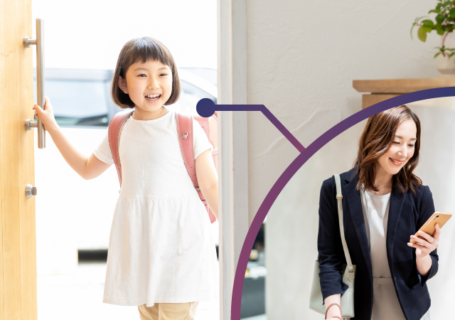 扉の解錠の際にスマートフォンアプリへ通知することが可能。外出先からもお子様のご帰宅を確認できます。